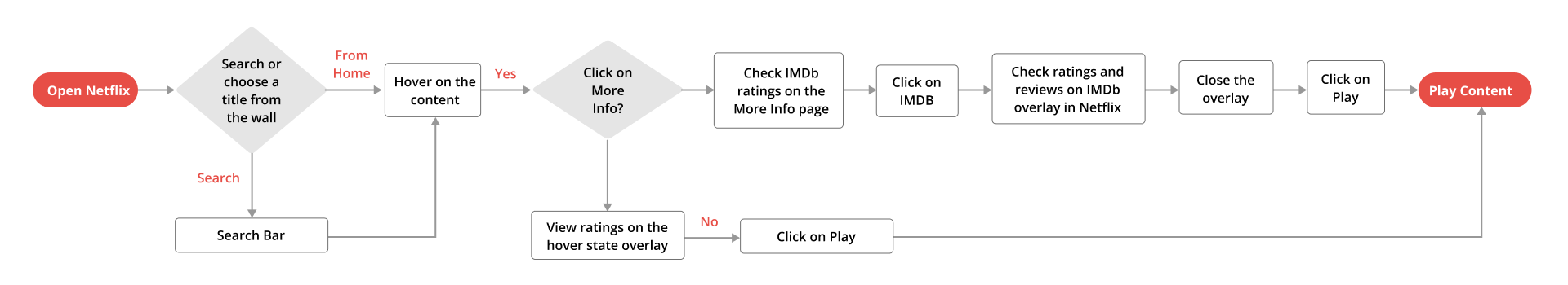 Users like to view ratings and/or reviews before committing to a particular movie or show. They had to leave the Netflix platform to do so or had to use another device which was inconvenient and distracted the viewer.