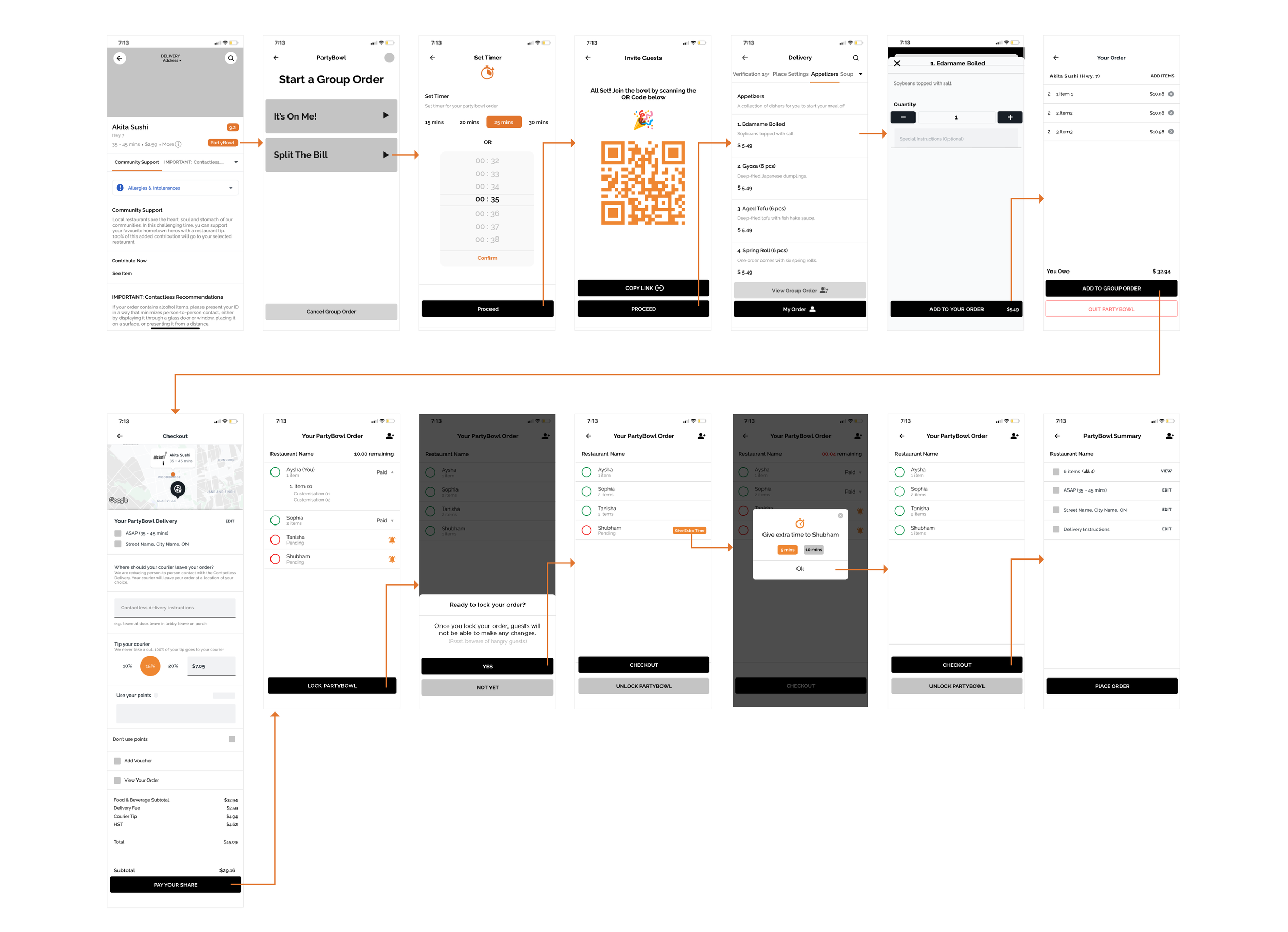 PartyBowl helps individuals in a group accomplish efficiency and freedom to order based on individual preferences by providing the option to let each person add their own order and pay separately within a group order which makes party hosts and guests feel comfortable so they can place multiple orders faster and from their own devices.